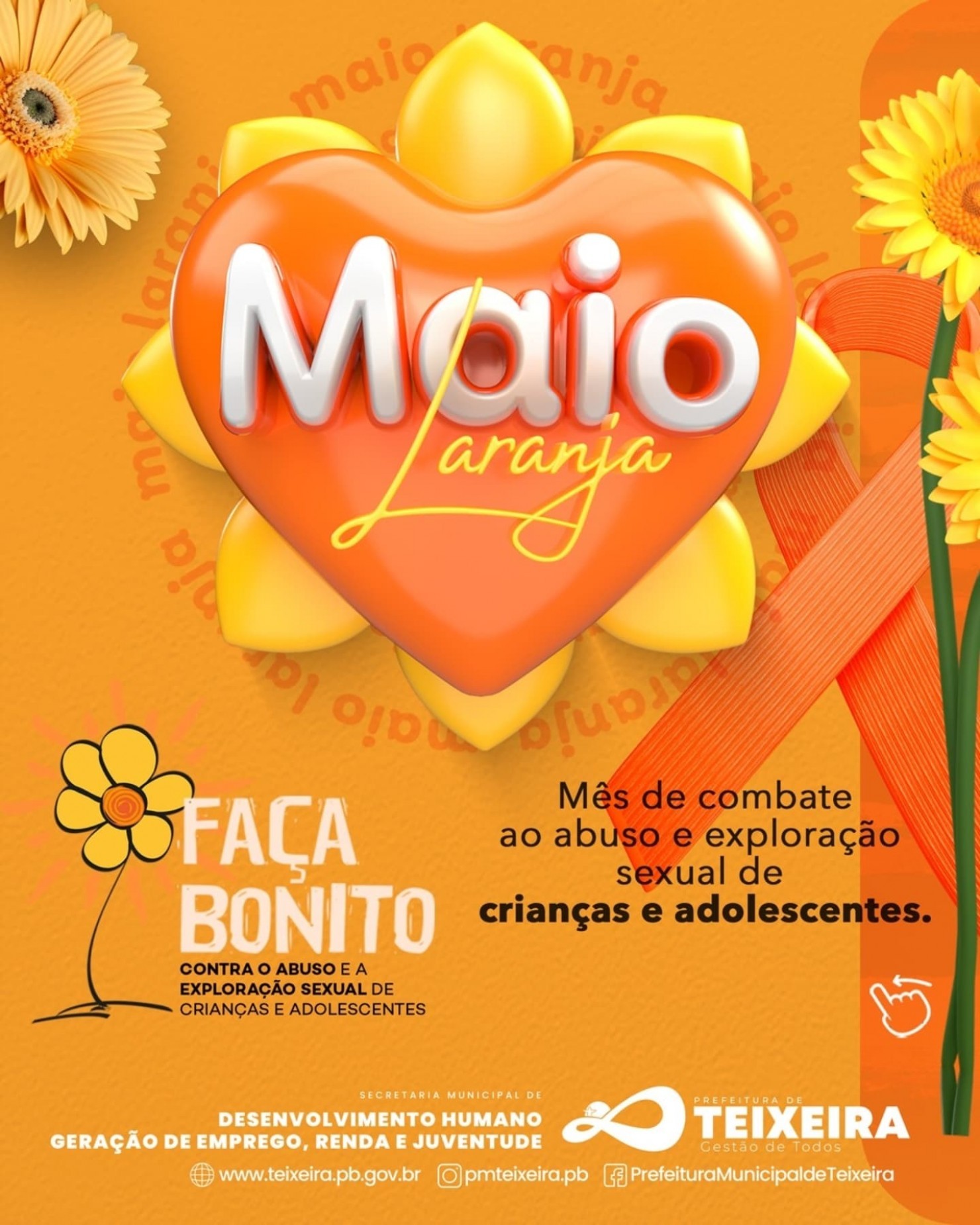 A Prefeitura de Teixeira desenvolverá ao longo deste mês uma série de ações alusivas ao "Maio Laranja", campanha nacional de combate ao abuso e à exploração sexual de crianças e adolescentes.