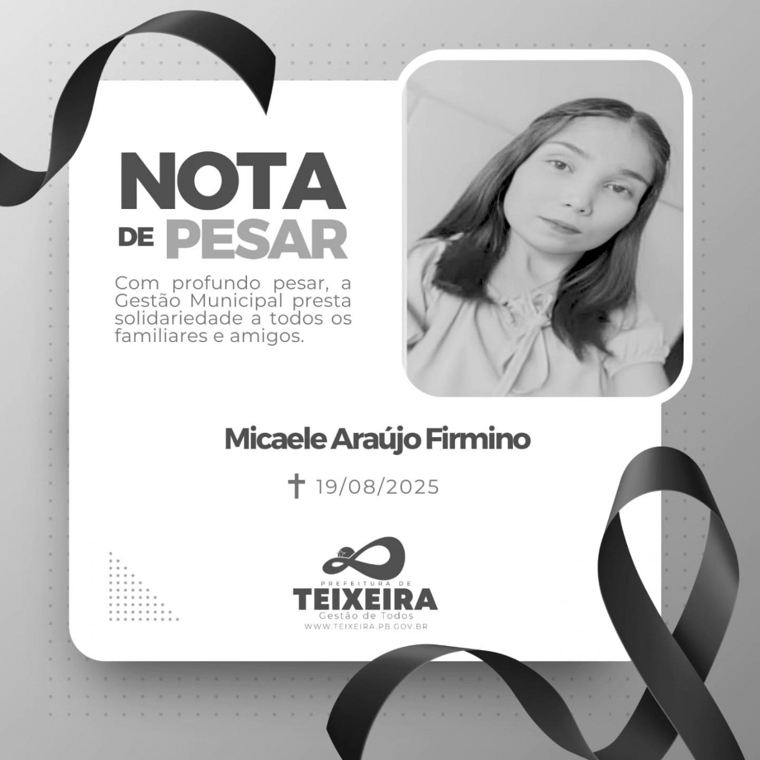 Neste momento de dor e luto, expressamos nossas sinceras condolências aos familiares, amigos e a todos que foram tocados pela sua trajetória de vida.
