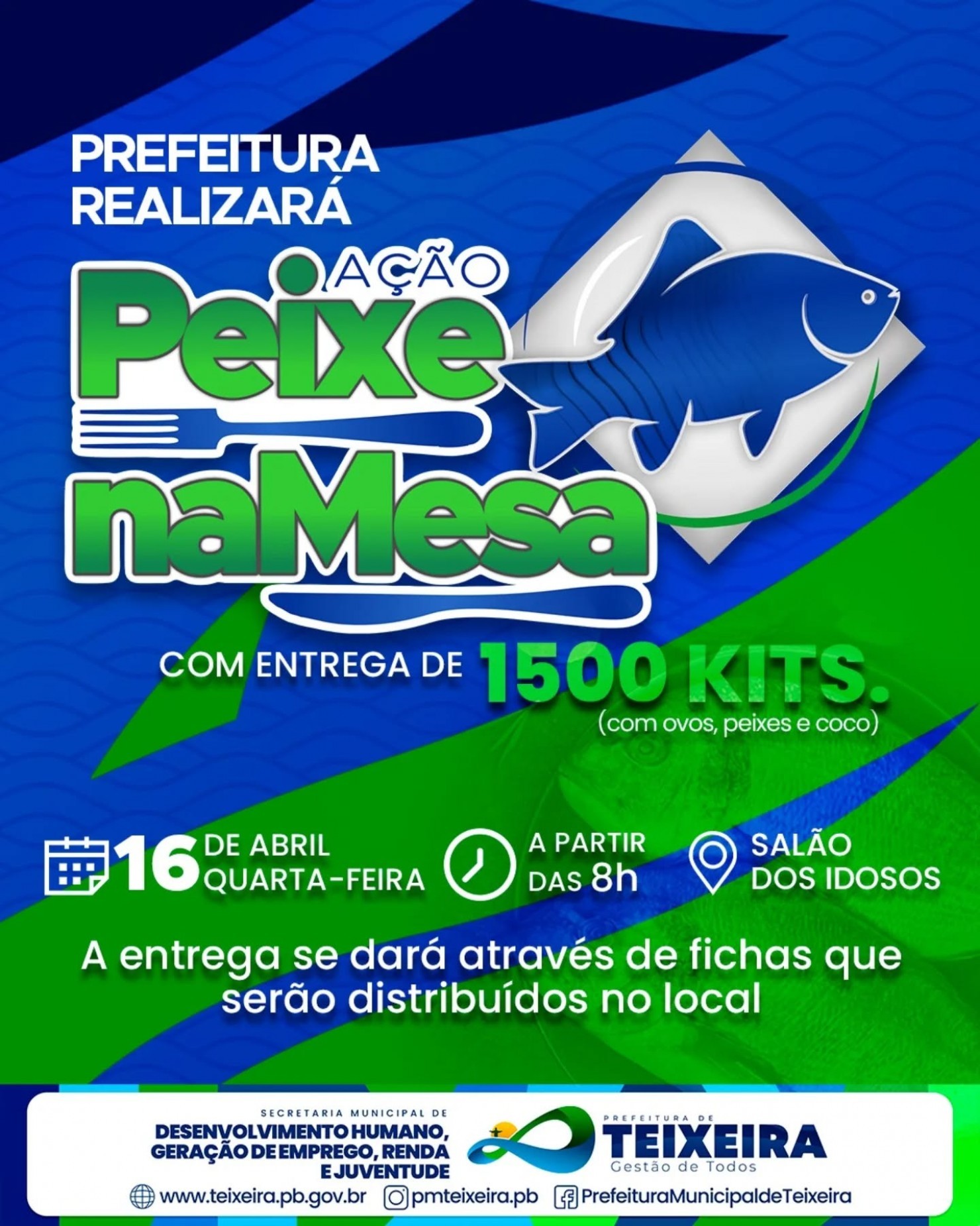A entrega das fichas terá início às 7h da manhã, e a distribuição dos alimentos começará às 8h. Além do peixe, cada família contemplada receberá um kit especial contendo coco e ovos, reforçando a conexão cristã dos alimentos consumidos durante o período da Semana Santa.