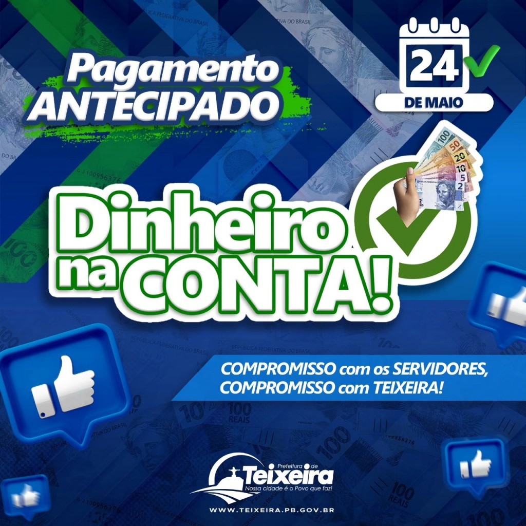 A cidade de Teixeira tem sido referência também quando o assunto é pagamento em dia, mas não é só isso que nos caracteriza, e sim os repasses serem de forma antecipada.
