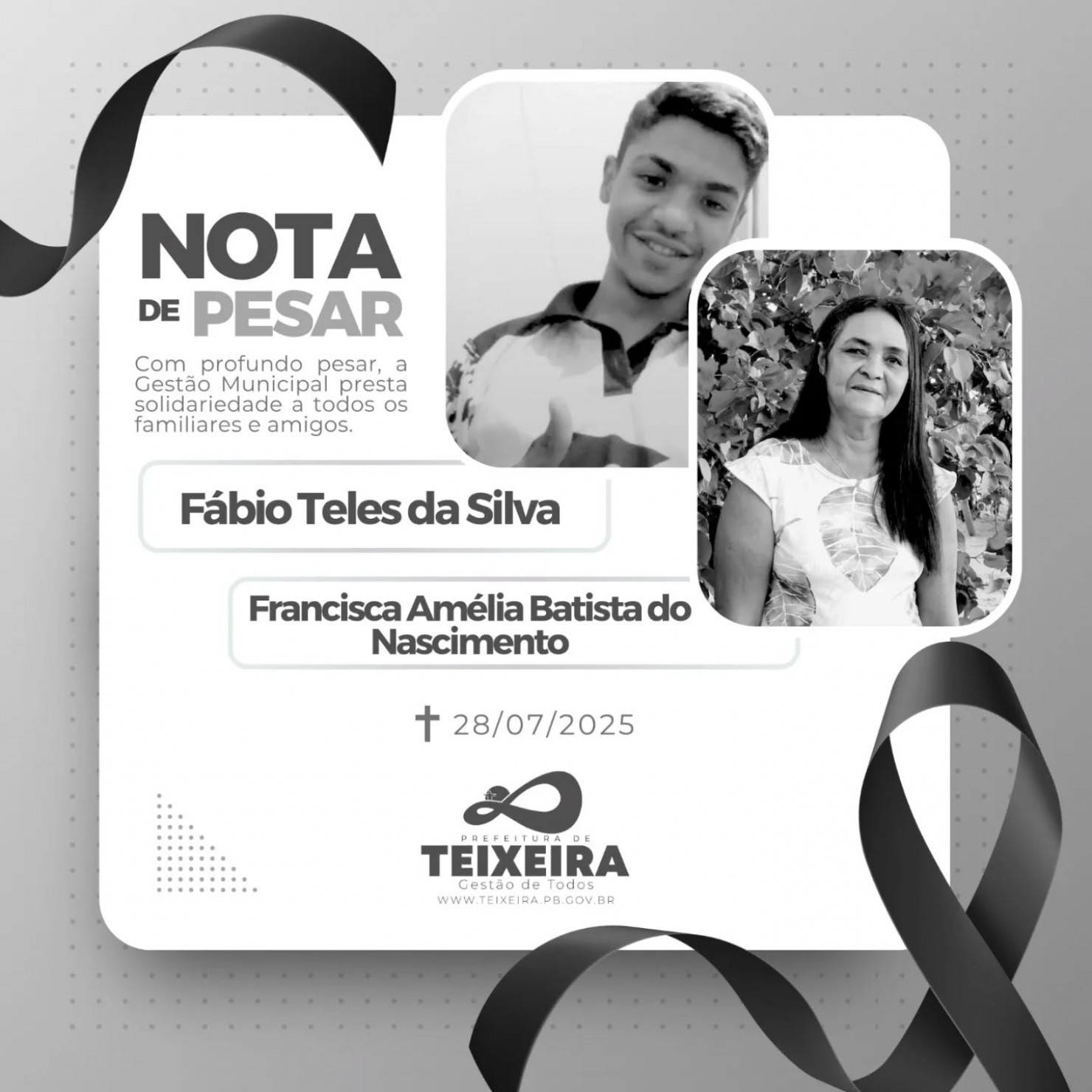 A cidade de Teixeira, que tanto se orgulha de seus cidadãos, jamais esquecerá a contribuição de Fábio e Francisca para nossa comunidade.