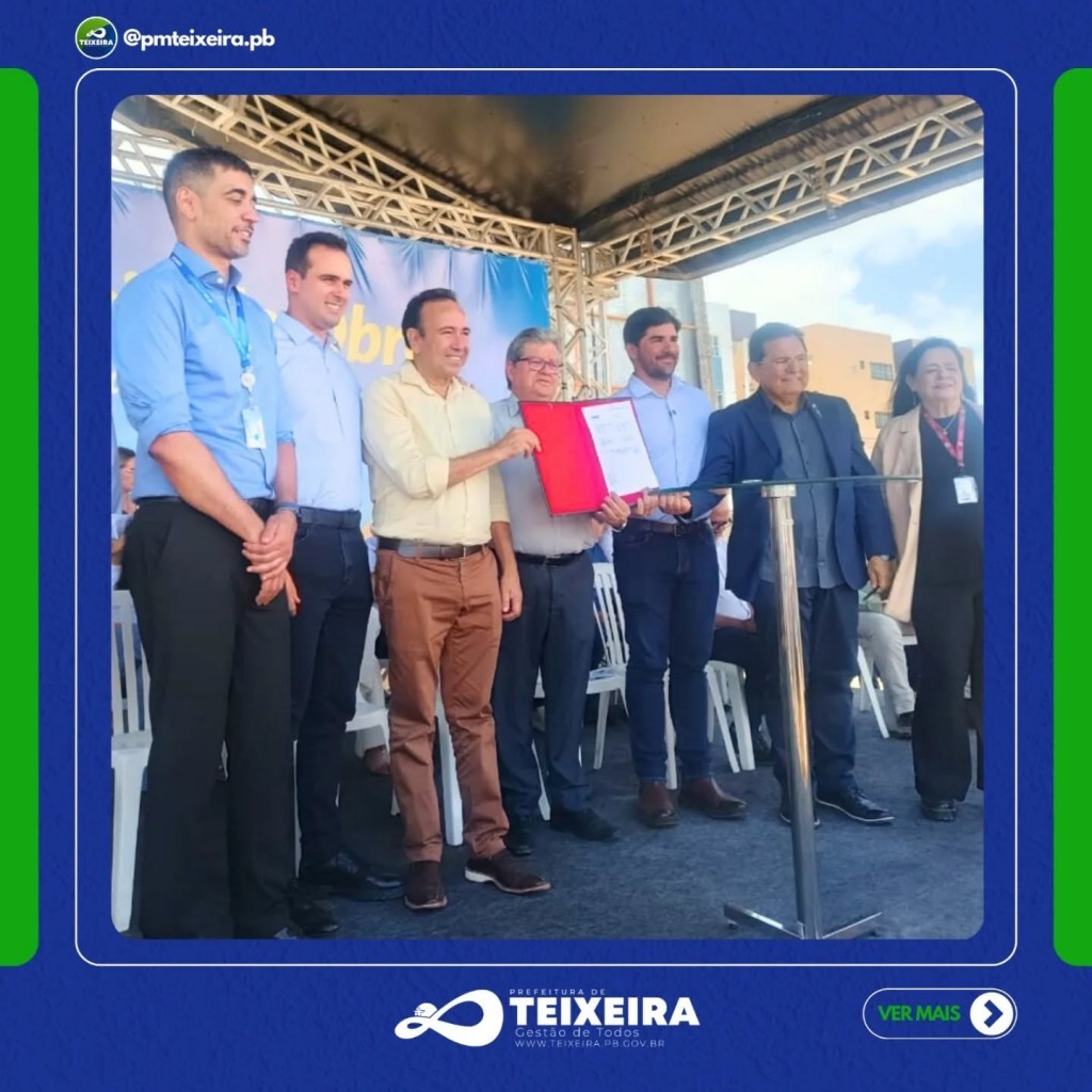 Teixeira será um dos sete municípios paraibanos beneficiados pelo novo programa de habitação popular lançado pelo Governo da Paraíba em parceria com o Ministério das Cidades. A assinatura da ordem de serviço ocorreu na manhã dessa segunda-feira, 24 de fevereiro, em João Pessoa, com a presença do governador João Azevêdo. O prefeito Wenceslau Marques e o deputado estadual Adriano Galdino também participaram da cerimônia.